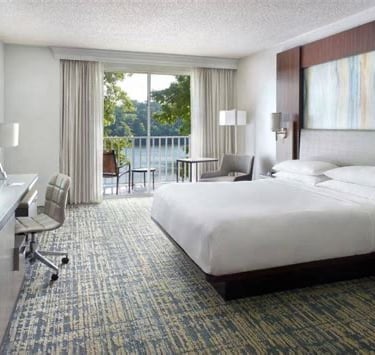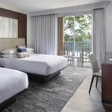 The Atlanta Evergreen Lakeside Resort offers an impressive array of leisure activities, including heated indoor and outdoor pools, a 24-hour fitness center, and 36 holes of spectacular golf. The hotel is set amongst 2,300 acres of parkland featuring miles of trails and a beautiful lake, perfect for outdoor recreation.